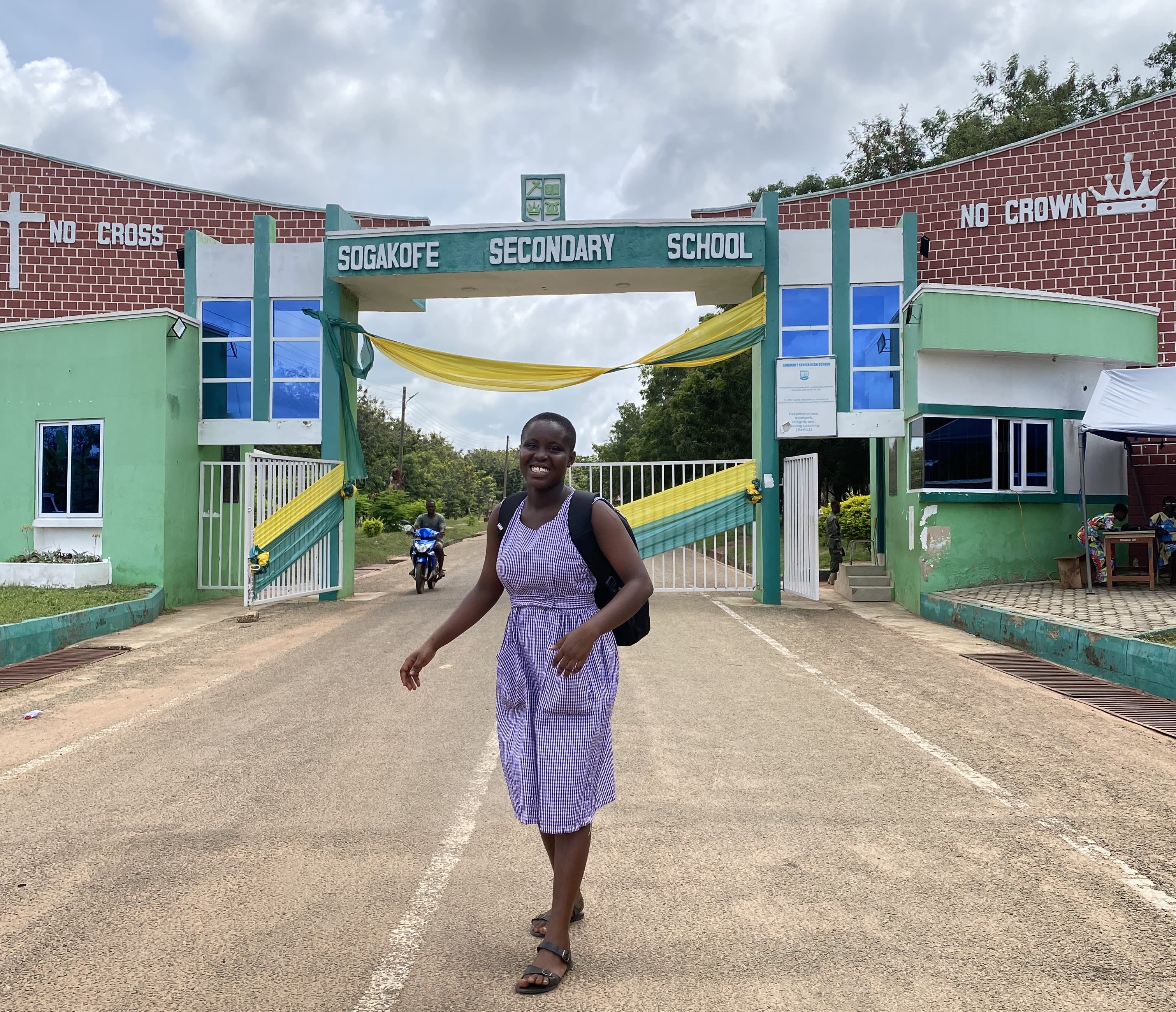 In 2025, Vera wrote her Basic Education Certificate Exam and passed. That October, she gained admission to Sogakope Senior High School in the Volta Region of Ghana, where she is now studying General Arts with a focus on Economics and Mathematics. Vera is determined to become a banker and is already nurturing her love for business and entrepreneurship. During school vacations, she learns hairdressing and beadmaking, with hopes of starting a small business while she studies.
